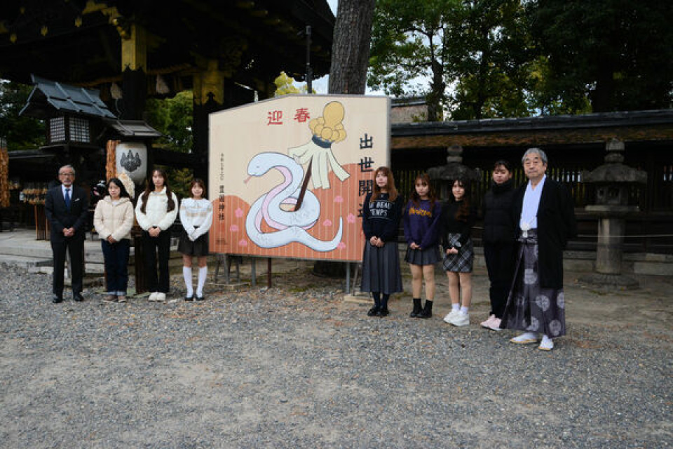 日语报道:(京都新聞)スマイルの白蛇、女子大生たちが奉納 京都の神社、干支にちなんだ巨大絵馬