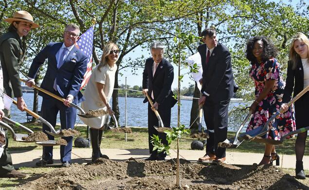 日本赠送的樱花树苗植树仪式在华盛顿举行 象征日美友谊