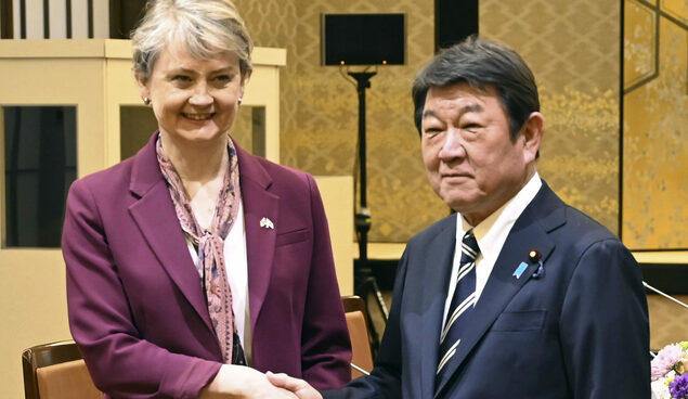 【共同社4月20日电】日本外相茂木敏充20日在东京与英国外交大臣库珀举行了战略对话。双方就稳定伊朗局势以及确保霍尔木兹海峡航行安全的合作进行了磋商,并就中国活动活跃的印度太平洋局势及扩大双边合作交换了意见。日英外长上次举行战略对话是在2021年5月。茂木在会谈中表示:“在国际秩序动摇的背景下,与共享基本价值的英国加强合作的重要性进一步提升。”库珀回应称:“两国在航行自由问题上立场一致。”在联合记者会上,库珀称“期待今后数月内首相高市早苗访问英国”。